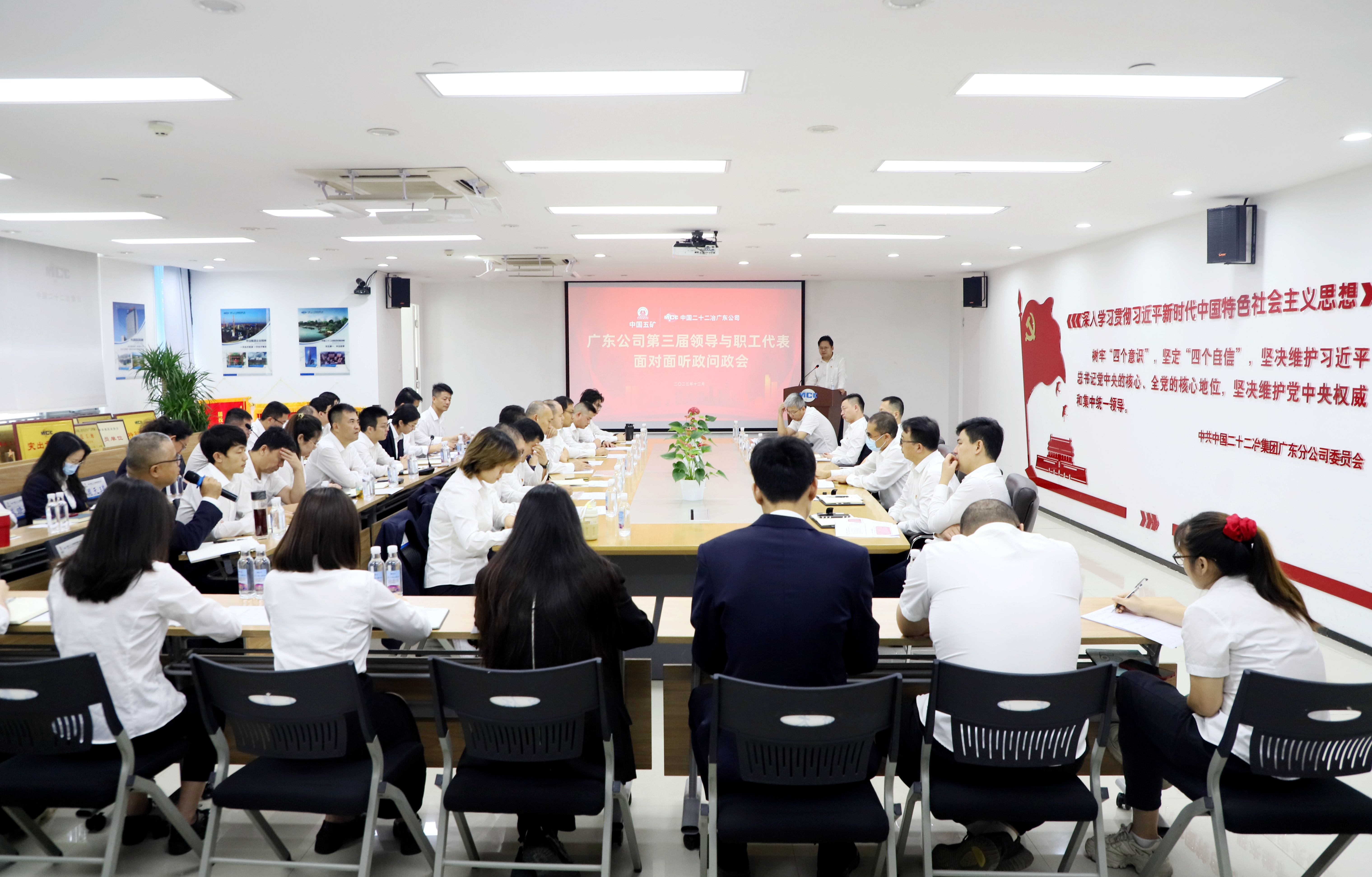 廣東公司助理級(jí)以上領(lǐng)導(dǎo)、各部門負(fù)責(zé)人以及職工代表、青年員工代表現(xiàn)場(chǎng)參加會(huì)議,各項(xiàng)目部管理人員視頻參會(huì)。