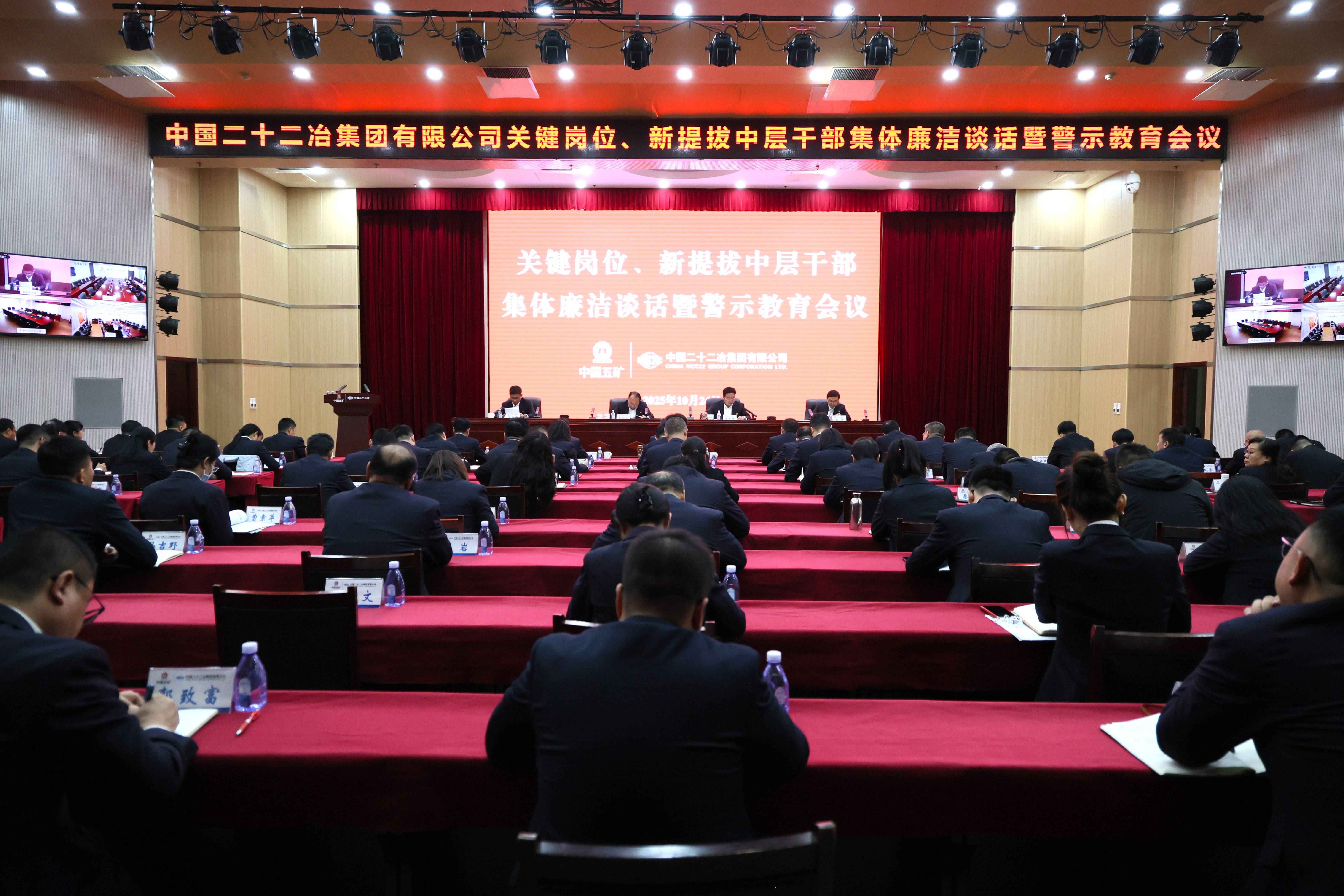10月24日,中國二十二冶召開關(guān)鍵崗位、新提拔中層干部集體廉潔談話暨警示教育會。中國二十二冶黨委書記、董事長袁斯浪出席會議并講話,黨委副書記、職工董事張育鵬主持會議并作集體任職談話,紀委書記田和平做警示教育和集體廉潔談話。