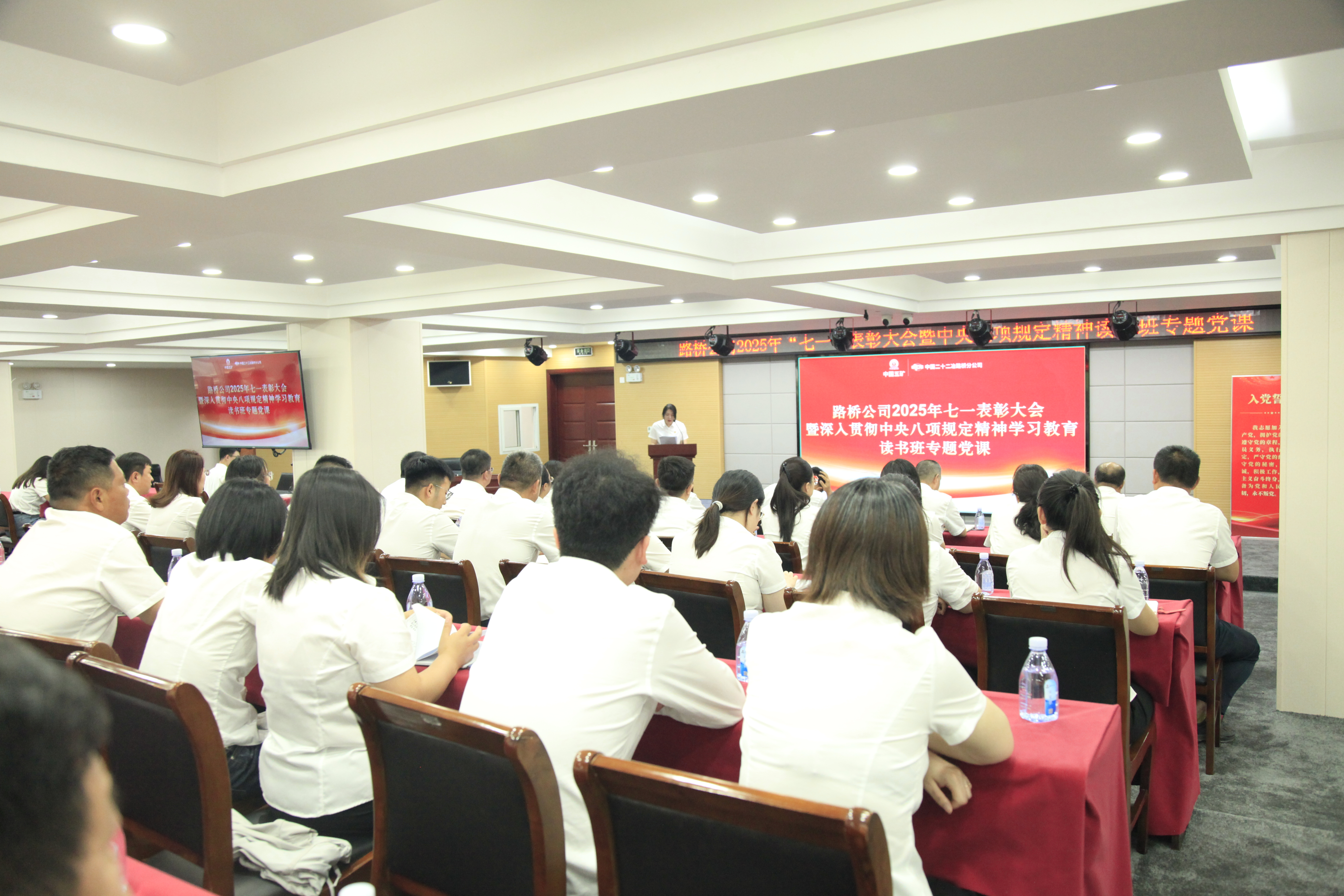 6月27日,路橋公司召開2025年七一表彰大會暨深入貫徹中央八項規(guī)定精神學習教育讀書班專題黨課,旨在深入學習貫徹習近平新時代中國特色社會主義思想和黨的二十大精神,進一步增強黨員干部的黨性修養(yǎng),強化紀律意識,推動中央八項規(guī)定精神落地生根。集團公司紀委書記田和平講授了《深入貫徹中央八項規(guī)定精神》主題黨課。會議由路橋公司黨群工作部部長范昕煜主持。